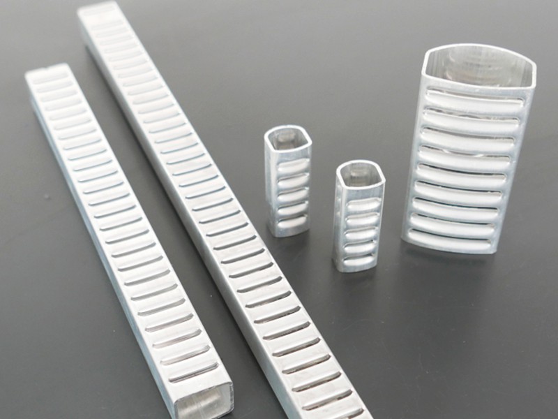 This condenser header pipe punching machine is PLC control, HMI operation. Manually inserting aluminum pipe onto core axis, pressing down start button, the machine will automatically position, insert core axis, clamp, lubricate, punch, shock, draw core axis, raise and automatic release finished header pipe.