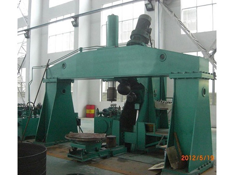 The first step involves drum pressing machine. The piston of main cylinder moves up and down to drive upper tool to press the raw plate to become the required concave shape. The manipulator mounted inside the frame will move, rotate and incline the workpiece.