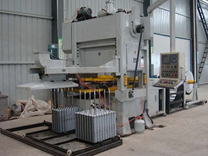 The automatic fin press line includes an auto decoiler, a lubricant oil spreading device, high speed punch press, and a fin unloading and stacking device. It can work on both aluminum and copper fin plates: