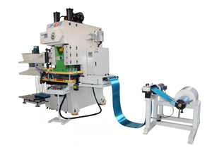 The line is PLC controlled, HMI operated, and fully automatic. We supply both double crank and single crank high speed punch presses.